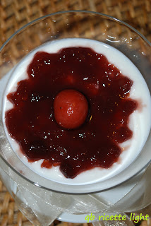 In una ciotola mescolare la ricotta con lo yogurt e con metà dello zucchero fino ad ottenere una consistenza tipo crema pasticcera (se il composto è troppo denso aggiungere del latte). Distribuire il composto in 4 coppette da dessert e metterle in frigo. Nel frattempo, mettere in una pentola i frutti di bosco ancora surgelati, aggiungere poca acqua e lo zucchero rimanente. Cuocere fino al completo scongelamento. Al momento di servire, tirar fuori dal frigo le coppete con la mousse e aggiungervi sopra la salsa di frutti di bosco calda.